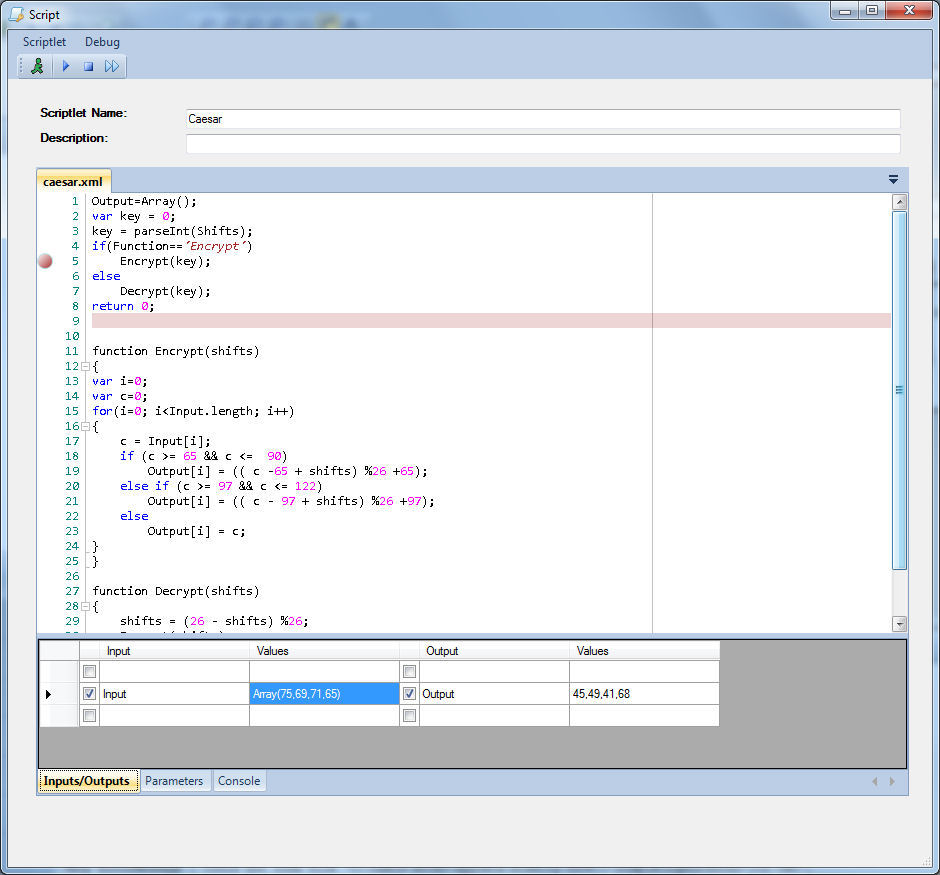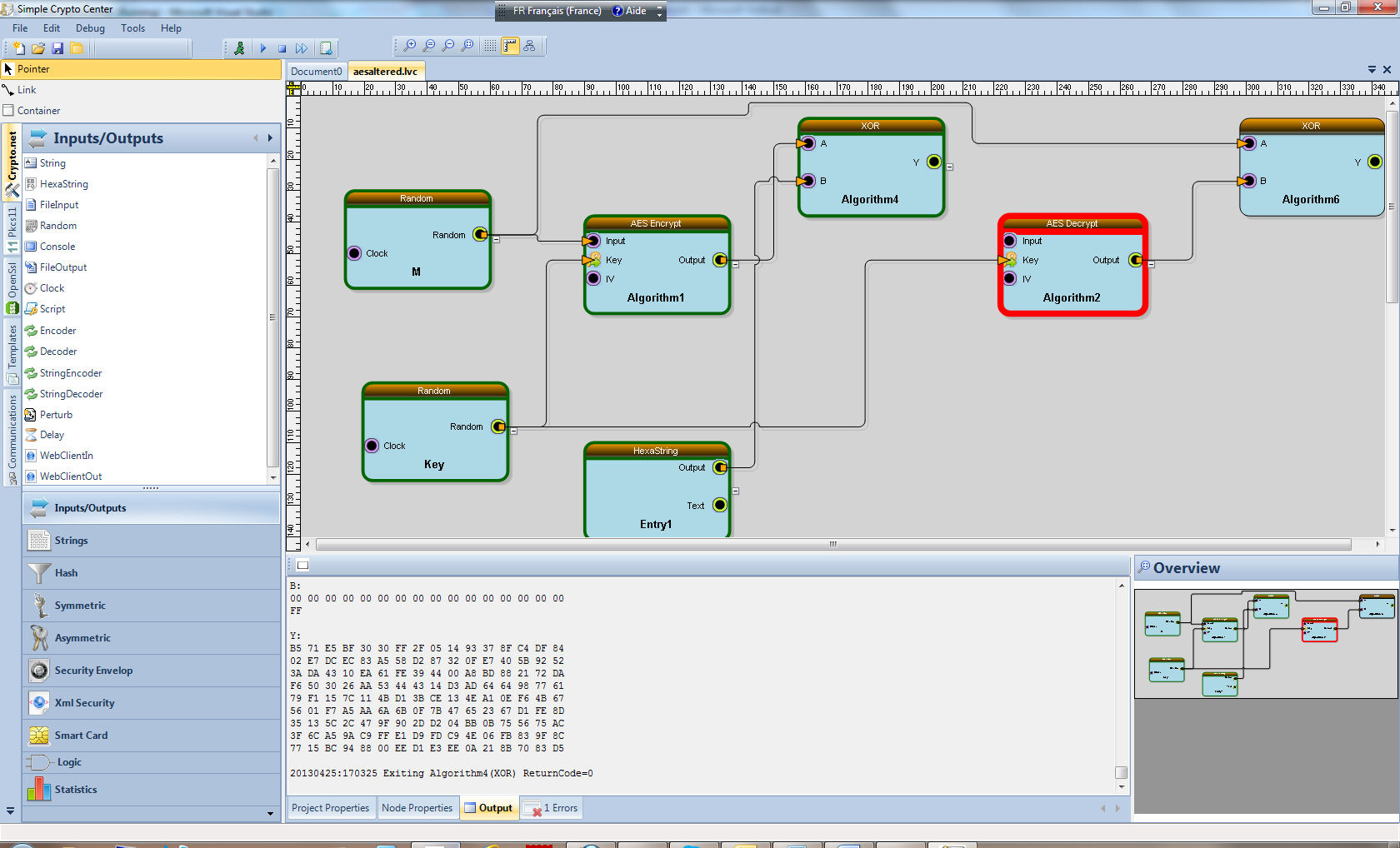SimpleCrpyotCenter is a visual Integrated Development Environment which enables users to develop and test cryptographic functions or to develop automatic treatments which can be executed in command mode.